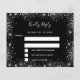 Tenga en cuenta que esta nota de RSVP está en papel de volante y es muy delgada. Los sobres no están incluidos. Para tarjetas RSVP más gruesas (mismo diseño) visite nuestra tienda. Un fondo negro de moda. Decorado con purpurinas de plata falsa, chispas. Personalice y agregue la respuesta por fecha y sus nombres.