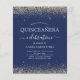 Las invitaciones para la celebración de la Fiesta Sparkle Girly Quinceanera, Purpurina de Faux Blue Faux, incluyen una hermosa y elegante tipografía de guiones para la celebración especial de cumpleaños número 15.