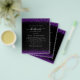 Una alternativa de PAPER (no tarjeta) de gran valor SIN ENVELOPES a un tamaño menor de 4,5" x 5,6" y a un precio económico. (Los sobres estándar A6 son el tamaño más próximo a caber). Invitación negra del Fiesta de Navidades del Purpurina Púrpura Glam. Un borde de falso purpurina está en cada lado superior e inferior con un fondo negro clásico, y los Navidades están en un guión estilo escritura a mano en blanco. Personaliza fácilmente el texto a tus propios detalles. También puede cambiar el texto y los colores de fondo a través de la opción personalizar adicional si lo desea.