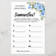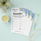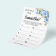 Flores azules ¿Cuántos años tenía la novia? Juegos de versión en inglés y español incluidos (frontal y posterior). Cambiar la redacción al diseño de las versiones en español e inglés. Para una personalización adicional (cambiar la redacción, añadir o eliminar el número de fotos, el color del tipo de letra, el estilo del tipo de letra ), haga clic en personalizar, desplácese hacia abajo y haga clic en el vínculo "hacer clic en el personalizar más adelante". CÓMO JUGAR: Muestra las fotos de la futura novia, y numerarlas de 1 a 10. ¡Los invitados anotan su conjetura de cada foto y la persona con las respuestas más correctas gana!
