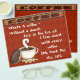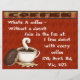 Agarre su tienda con estos tazones, polos, volante, membrete y tarjeta de perfil a juego con nuestro diseño Qué es un café, Sin un donut!, con una taza blanca con café dentro y un vapor saliendo de ella y un donut de chocolate inclinándose en su costado contra la taza blanca. El volante, el membrete y la tarjeta de perfil también tienen un fondo marrón rojizo con un cartel rojo espina marrón que dice café. El diseño fue creado por Sketchart26 usando obras de arte de Trina Clark.