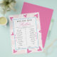 Añade un elemento de emoción y anticipación a tu ducha de bebé con nuestro "Adivina quién" Baby Shower Game Flyer."Cada pregunta puede ser editada, así que si quieres cambiarla puedes!Diviértete y adivina!