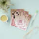 El glamour femenino es la esencia de esta invitación de cumpleaños de Quinceañera, fiesta de 15 años, quinceañera, con brillo rosa y dorado rosa. Los campos de plantilla de texto en ambos lados permiten incluir RSVP, registro de regalos y cualquier otro detalle del evento de la fiesta de sweet15 según sea necesario. El diseño presenta brillo que gotea, globos de lámina y una niña morena con un vestido brillante de rosa dorado glamuroso. También disponible con cabello rubio y rojo. Vea la colección adjunta para ver las variaciones.