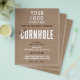 Este folleto rústico, sencillo y profesional con el logotipo de negocios Let's Play Cornhole Fundraiser presenta un sencillo fondo estético de papel de kraft con texturas ásperas de color blanco. Simplemente reemplace su logotipo y actualice la información de su negocio y los detalles del torneo sin ánimo de lucro y de organización sin fines de lucro. ¡Juguemos, juntemos fondos y ayudemos a nuestra comunidad!