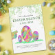 La Pascua está aquí y es hora de celebrar nuevos comienzos con una divertida caza de barrenderos en primavera. Esta hermosa y colorida acuarela adorable invitación a la caza de huevos y pollo adorable con brunch de Pascua es una excelente manera de extender la alegría de la primavera con tus amigos y familia. El presupuesto personalizado es un tema verde oscuro. La celebración de Pascua invita a los amigos y familiares usando la plantilla de personalizar y fácil de usar. Adorable pollo de arte psicodélico multicolor y huevos ilustraciones únicos en colores vivos obra de la artista Catherine Sweetman.