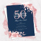 Elegante "Programa de Fiesta de Cumpleaños" con Arreglo Floral en Rosa Oro y Marina con texto personalizado.