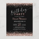 Celebra tu hito con el Rosa de presupuesto Oro Negro Cualquier Edad Invitación a los 18 Años. Diseñada con un elegante efecto purpurina de oro subió en un elegante fondo negro, esta asequible y elegante invitación es perfecta para celebrar un cumpleaños especial de una manera moda y moderna.
