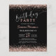 ¡Celebremos un hito especial del 90 con elegancia y un estilo económico! El Rosa de presupuesto Gold Black Any Age 90th Birthday Invitation presenta una impresionante mezcla de purpurina de oro rosa y diseño negro elegante, creando una sensación de lujo sin el alto costo. Esta invitación captura perfectamente la esencia de una celebración lujosa, a la vez que permanece asequible para su evento memorable.