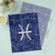 Un signo cromado como Pisces zodiac en un fondo de diseño de camuflaje digital azul marino. Un diseño de arte urbano moderno para una gran idea de regalo de cumpleaños personalizado. Utilice el vínculo "Preguntar a este diseñador" para contactarnos con sus solicitudes de diseño especiales o para obtener ayuda con sus necesidades de personalización.