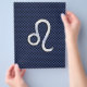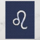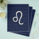 Un cromo plateado como el símbolo Leo Zodiac sobre un fondo de impresión de textura de diseño de fibra de carbono azul marino. Un diseño de arte urbano moderno para una gran idea de regalo de cumpleaños personalizado. Utilice el vínculo "Preguntar a este diseñador" para contactarnos con sus solicitudes de diseño especiales o para obtener ayuda con sus necesidades de personalización.