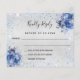 Flyer RSVP de boda con flores azules plateadas presupues