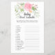 Este elegante volante de Rubor Peonies es perfecto para una elegante ducha o rociada de bebé chica. El diseño de este juego presenta peonías delicadas de rubor con verduras de plumas sobre un simple fondo blanco. LLAVE DE RESPUESTA: 1. téter, 2. bassinet, 3. fórmula, 4. manta, 5. cuna, 6. pañal, 7. móvil, 8. botella, 9. pacificador, 10. pato de goma, 11. animal relleno 12. termómetro, 13. trona alta, 14. tabla cambiante, 15.