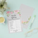 Este Rubor Peonies on Gray adivina que el juego de precios correcto es perfecto para una elegante ducha o rociada de bebé chica. El diseño presenta peonías de color agua onduladas con vegetación sobre un fondo gris suave, y caligrafía elegante. Personalice la tarjeta de juego con el nombre de la futura madre y la fecha.