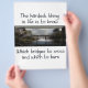 "Lo más difícil en la vida es saber qué puentes cruzar y cuáles quemar". No queme los puentes que hay que cruzar, ni los puentes que se deberían haber quemado. Recuérdese a sí mismo o a alguien que le importe este elegante diseño con una escena montañosa maloliente con la silueta de un puente peatonal japonés.