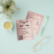Un fondo degradado de rosa dorado, con gotas brillantes, tijeras negras y pestañas. En el frente: El texto: Lista de precios. Personaliza y agrega tu nombre y dirección. Crea tu propio código QR agregando tu url a tu sitio web o a tu cuenta de redes sociales.