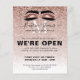 Pestañas de Salón de Belleza y Spa Purpurina Rosa Dorado Estamos Abiertos Flyer Seguro COVID