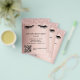 Un fondo degradado de rosa dorado, con gotas de brillo y pestañas. En la parte delantera: El texto: Lista de precios. Personaliza y añade tu nombre y dirección. Crea tu propio código QR añadiendo la url de tu sitio web o cuenta de redes sociales.