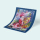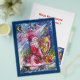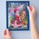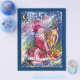 Pintura de acrílico colorida, caprichosa y artística, Santa está tocando arpa a la luz de la luna, búho, ornamentos florales, plantas de invierno, juguetes para niños, bayas huecas en colores brillantes rojo, verde, blanco, azul, amarillo. por Bulgan Lumini (c)