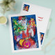 Pintura de acrílico colorida, caprichosa y artística con adornos florales, plantas de invierno, juguetes de bayas y globos.