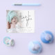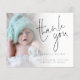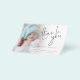 Una alternativa de gran valor en un tamaño más pequeño de 4,5" x 5,6" sin sobres - los sobres A6 estándar son el tamaño más cercano a ajustar. Guión de foto de PAPER Gracias Anuncio de nacimiento Envíe las alegres noticias de su recién nacido y dé las gracias al mismo tiempo con este diseño fotográfico minimalista, con un hermoso guión para Gracias y el resto del texto en ambos lados es fácil de personalizar. Reemplace la foto de ejemplo con la suya propia. Una capa superpuesta de gradiente está encima de la foto, por lo que se desvanece al llegar al centro con el texto parcialmente colocado sobre la parte superior. Puede cambiar el color de fondo de la parte posterior a través del personalizar a otro color si se adapta mejor a su imagen.