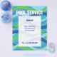 Folletos de servicio de piscina con diseño de olas azules y verdes fluidas para negocios de mantenimiento de piscinas o spas - o cualquier otro propósito - con texto totalmente personalizable. Edite el texto a lo que necesite para un anuncio o folleto llamativo para su negocio.