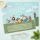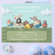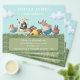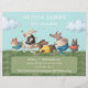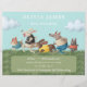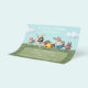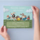 Un volante de atención a mascotas. Perfecto para paseantes de perros, guardaespaldas, niñera de perros o cuidado de perros. El diseño consiste en un ilustracion de cinco perros graciosos que corren una carrera a través de un campo con cielo azul y nubes. Personalice agregando sus datos de contacto.