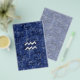 Un signo cromado como Aquarius Zodiac en un fondo de impresión de textura de diseño de camuflaje digital azul marino. Un diseño de arte urbano moderno para una gran idea de regalo de cumpleaños personalizado. Los diseños están disponibles en una selección de opciones de color populares. Utilice el vínculo "Preguntar a este diseñador" para contactarnos con sus solicitudes de diseño especiales o para obtener ayuda con su proyecto de personalización.