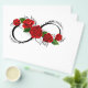 símbolo de infinito con rosas rojas y tallos negros sobre fondo blanco. Diseño con rosas. Estilo tatuaje. Estilo gótico. Gráficos tribales. Estilo boceto.