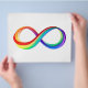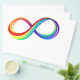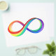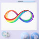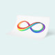 Símbolo claro de infinito de capas plásticas de colores saturados rojo, amarillo, verde, turquesa, azul y violeta sobre fondo blanco.