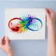 Flyer Símbolo infinito con pluma arco iris