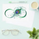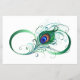 El símbolo del infinito con una pluma de pavo real brillante, verde y artística sobre un fondo blanco. Estilo tatuaje.