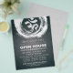 Yoga Studio Instructor de Meditación / Entrenador de vida / Healer / Reiki Master / Massage Therapy Open House Flyer Template - Elegante Caligrafía en blanco y negro Pincel Símbolo ZEN & OM.