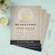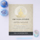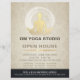 Yoga Studio Instructor de Meditación / Entrenador de vida / Healer / Reiki Master / Massage Therapy Open House Flyer Template - Elegante Relieve metalizado dorado Faux Yoga Meditation Easy Pose / Sukhasana Pose con símbolo ZEN sobre fondo de papel Damask de época.