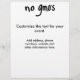 Reparta este folleto para promover la conciencia sobre los OMG y comer sano sin productos modificados genéticamente. Úselo para anunciar reuniones, eventos o simplemente para promover la conciencia sobre los alimentos modificados genéticamente y los riesgos para la salud asociados con estos alimentos. Este folleto es fácil de personalizar con sus palabras en un lado con un texto más pequeño "sin OMG" en la parte superior. En el otro lado, "sin OMG" está centrado en negrita en un fondo blanco fresco con las palabras personalizables "Por alimentos saludables" en la parte inferior. Los alimentos OMG están prohibidos en la Unión Europea, pero se venden en EE. UU. sin etiquetado. Muestra tus sentimientos y preocupaciones diciendo "No OMG". Algunos estados están empezando a exigir etiquetas, pero la mayoría no lo hacen en este momento. Totalmente personalizable.