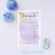 ¡Diviértete un poco en tu ducha con esta actividad tan fácil! Compra 10 artículos para bebés y muéstralos en una mesa para este divertido juego de adivinanzas de precios. ¡No te olvides de guardar el recibo! Que los huéspedes adivinen el precio y lo registren en la tarjeta. ¡Alza los precios para encontrar a tu ganador! Agregue el texto personalizado utilizando el formulario de plantilla. Utilice el papel de valor para facilitar la escritura.