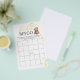 El Bingo Bebé es un juego divertido e interactivo perfecto para cualquier ducha de bebé. Esta tarjeta de juego presenta un diseño de oso de peluche con estrellas y luna para un tema de la ducha de bebé sobre la luna. A cada huésped se le entrega una tarjeta de bingo para completar los regalos que usted piensa que se abrirán. Mientras la futura madre abre sus regalos, los invitados marcan los artículos correspondientes en su tarjeta de bingo. ¡El primer invitado que marca todos los objetos seguidos y grita "bingo" gana el juego! Esta es una gran manera de lograr que todos participen en el proceso de apertura de regalos y al mismo tiempo añadir algo de emoción al fiesta.