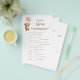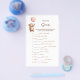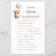 Add a touch of sweetness to your baby shower with this delightful 'Name That Song' game. The design showcases a charming teddy bear clutching a soft pink balloon, setting a gentle and joyful mood for your celebration. This interactive game challenges your guests to recall song lyrics, specifically those containing the word 'baby,' providing hours of entertainment. The elegant typography and subtle color scheme make this game card a beautiful addition to any baby shower decor. Make your baby shower unforgettable with this unique and engaging activity that everyone will love participating in.