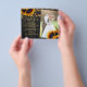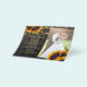 Elegante y chic tarjeta de agradecimiento PAPER FLYER con plantilla asequible para boda de verano u otoño en madera de granero marrón oscuro con hermosos ramos de girasoles, luces de cuerda o luces centelleantes, y un elegante guión de caligrafía dorada falsa. ++++++++++++++ ¡Fácil de personalizar con tus detalles y dos fotos en el anverso y reverso! +++++++++++ Adecuado para bodas rústicas de verano u otoño, al aire libre, en el jardín trasero o en un granero. ++++++++++++++++++++++++ ¡POR FAVOR LEA ESTO ANTES DE COMPRAR! Esta es una tarjeta asequible impresa en un FLYER de presupuesto. ++++ Tenga en cuenta que el PAPEL DE PRESUPUESTO ES DELGADO - Puede actualizar para que esta tarjeta se imprima en cartulina ++++ NO SE INCLUYEN SOBRES. +++ Verifique toda la información y ortografía de su texto porque recibirá exactamente lo que ve - nadie más verificará nada antes de imprimir. ++++ Esta tarjeta está diseñada para un tamaño de 4.5" x 5.6