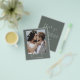 Boda Verde de Salto del Presupuesto Gracias Cartas que tienen una foto en la parte delantera y trasera. Las tarjetas de agradecimiento contienen una moderna tipografía de escritura cursiva con letras a mano que son elegantes, simples y modernas para usar después de la celebración del día de la boda.