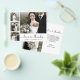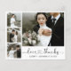 Tarjeta de agradecimiento de boda con cuadrícula de 4 fotos en negro y blanco, elegante y minimalista, con guión de corazón escrito a mano. Plantilla de tarjeta moderna con cuatro (4) fotos en la parte frontal y (1) una foto en la parte posterior. Con el texto "Amor y gracias" en tipografía cursiva con letra de corazón y fuente con cola de floritura. Personalice su nombre y agregue su mensaje. ¡Si necesita ayuda o un artículo coincidente, por favor contácteme!