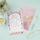 Permita que los huéspedes compartan su sabiduría y sus buenos deseos con esta encantadora tarjeta de consejo Baby Shower de color de agua rosada. Con flores blandas y vegetación ardiente en un delicado estilo acuático, esta elegante hoja de actividades es perfecta para duchas de niñas de estilo rústico, jardín o boho. Un hermoso recuerdo que los futuros padres valorarán en los años venideros. ✨ Puntos destacados: ・ Hoja de consejos de Personalizable para duchas de bebé ・ Presenta flores silvestres acuáticas en tonos rosados polvorientos ・ Es ideal para duchas de bebé de temática floral, boho o primaveral ・ Coordenadas con la colección de Flores Silvestres Rosa Polvorientas