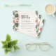 Esta invitación de ducha de novia tropical con presupuesto cuenta con flores tropicales rosadas, hojas de palmera y monstera, salpicaduras doradas. La parte posterior de esta invitación es verde. Personalízala y disfrútala.
