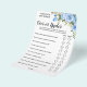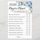 Flores azules encima o bajo juego de Baby Shower. Juegos de versión en inglés y español incluidos (frontal y posterior). Cambiar la novia a Nombre en la plantilla para la versión en español e inglés. Para más personalización (cambiar pregunta y otro texto, color de fuente, estilo de fuente ), haga clic en personalizar, desplácese hacia abajo y haga clic en el vínculo "haga clic para más personalizar". CÓMO JUGAR: Los invitados adivinan si creen que el número de cada declaración ha terminado o está por debajo