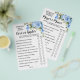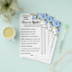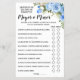Flores azules Se incluye un juego de versión en inglés y español (frontal y posterior). Cambiar la redacción al diseño de las versiones en español e inglés. Para una personalización adicional (cambiar pregunta y otra redacción, color de fuente, estilo de fuente ), haga clic en personalizar, desplácese hacia abajo y haga clic en el vínculo "haga clic en el personalizar más adelante". CÓMO JUGAR: Los invitados adivinan si creen que el número de cada declaración ha terminado o está por debajo