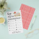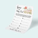 Tarjeta de juego de baby shower "Animales de granja Adivina la comida para bebés". Cambia el texto al diseño. Para personalizar adicionalmente (cambiar el número de líneas y cualquier otro texto, color de fuente, estilo de fuente), haz clic en personalizar, desplázate hacia abajo y haz clic en el enlace "haz clic para personalizar más". CÓMO JUGAR: Ten 10 comidas para bebés diferentes para que los invitados las prueben y adivinen el sabor de cada una. Los invitados escriben sus suposiciones de cada sabor y la persona con más respuestas correctas gana.