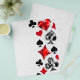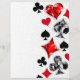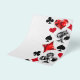 Fondo gris, texturado con símbolos de cartas de juego poligonales. Símbolos de cartas de juego, corazón, diamantes, pala y club.