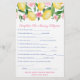 Nostalgic "Completa las rimas de la guardería" juego de ducha de bebé en limones con diseño de acentos rosa y azul cobalto. Sugiero comprar en el papel de "valor" ya que esto es mate/sin revestimiento y es tan fácil de escribir.
