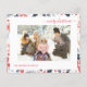 Presupuesto Feliz Navidad Añade tu propia foto al frente con una mínima tarjeta navideña simple y elegante con poinsettia acuarela, rosa, rojo, dorado, holly, flores festivas con borde verde - agrega una segunda foto al dorso con un guión elegante para incluir tus nombres y fechas. Es la tarjeta festividad perfecta para enviar a familia y amigos.