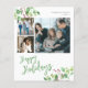 Moderno y elegante Happy Holidays green manuscrito guión de caligrafía 6 fotos familiares simple Navidades de invierno blanco tarjeta de vacaciones PAPER FLYER con tu personalizado texto personalizado en ambos lados con vegetación botánica acuarela y bayas sagradas. ++++++++ POR FAVOR, TENGA EN CUENTA que los colores del fondo y del guión son editables. Puede cambiar cualquiera de ellos después de seleccionar la opción PERSONALIZAR debajo del menú PERSONALIZAR TI. Si no se siente a gusto cambiándolo, por favor pida ayuda a Zazzle Live Design Service o al diseñador. ++++++++++++++++++++++++++ POR FAVOR LEA ESTO ANTES DE COMPRAR! Esta es una tarjeta asequible para el presupuesto impresa en un FLYER. ++++ Tenga en cuenta que el PAPEL PRESUPUESTARIO ES DELGADO - Puede actualizar para que esta tarjeta se imprima en el material de cartón ++++ ENVELOPES NO INCLUIDOS. +++ Compruebe dos veces toda la información y la ortografía del texto porque recibirá exactamente lo que ve - nadie más comprobará nada antes de imprimir. ++++ Esta tarjeta está diseñada para el tamaño de 4,5" x 5,6". En el funda usted elige otro tamaño de la tarjeta y el texto sale de la página, todo debe ser corregido antes de añadir el producto al carrito. Por favor, pida ayuda al servicio de diseño en vivo.