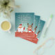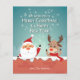 Santa y los renos dan una ola mientras están parados en la parte superior de la chimenea. Tarjeta de Navidad adorable que simplemente dice "Te deseamos una Feliz Navidad y un Feliz Año Nuevo".
